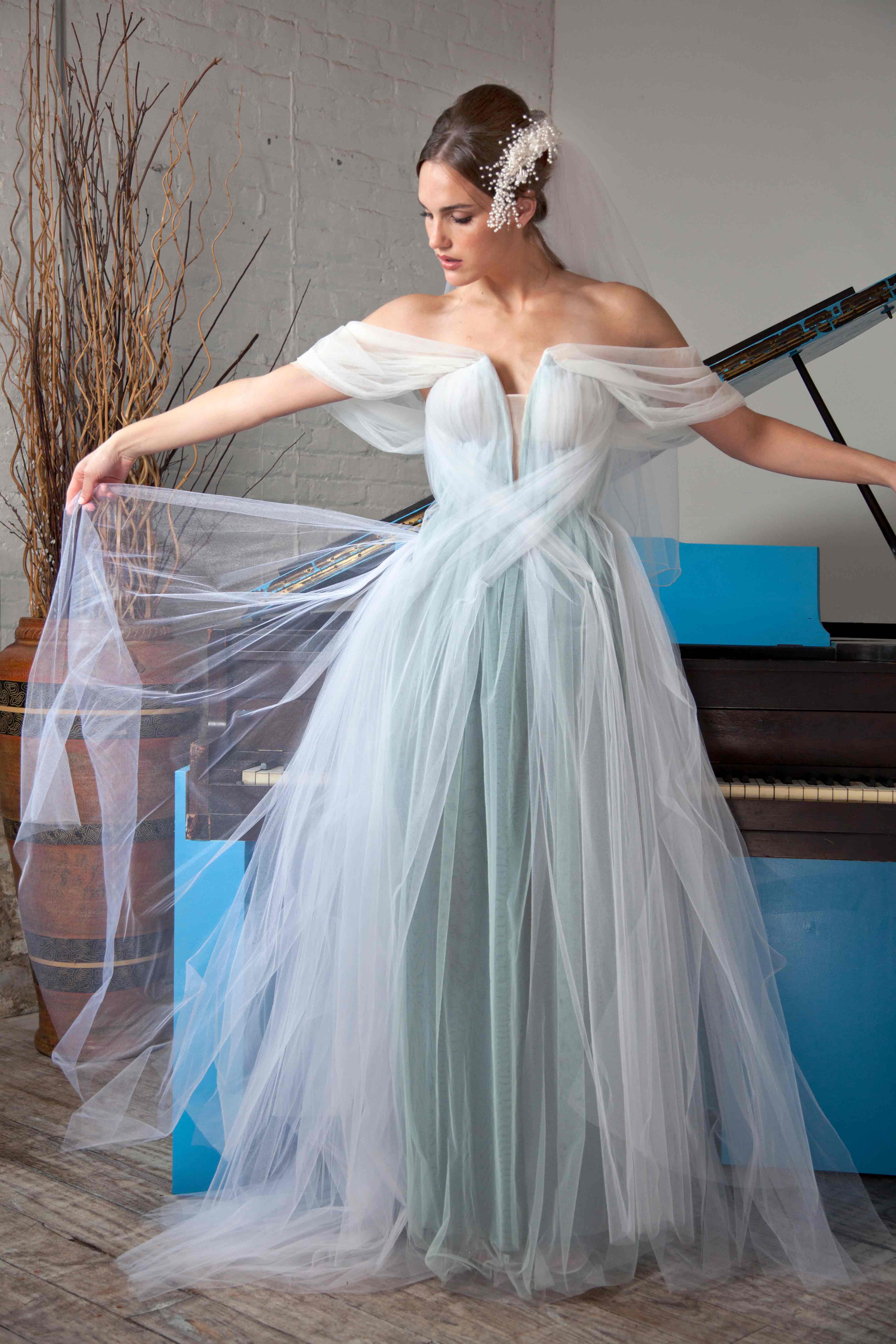 Experience celestial elegance with Celeste, a breathtaking Tiffany blue bridal ballgown that radiates ethereal beauty. Crafted with meticulous hand-pleating, the...